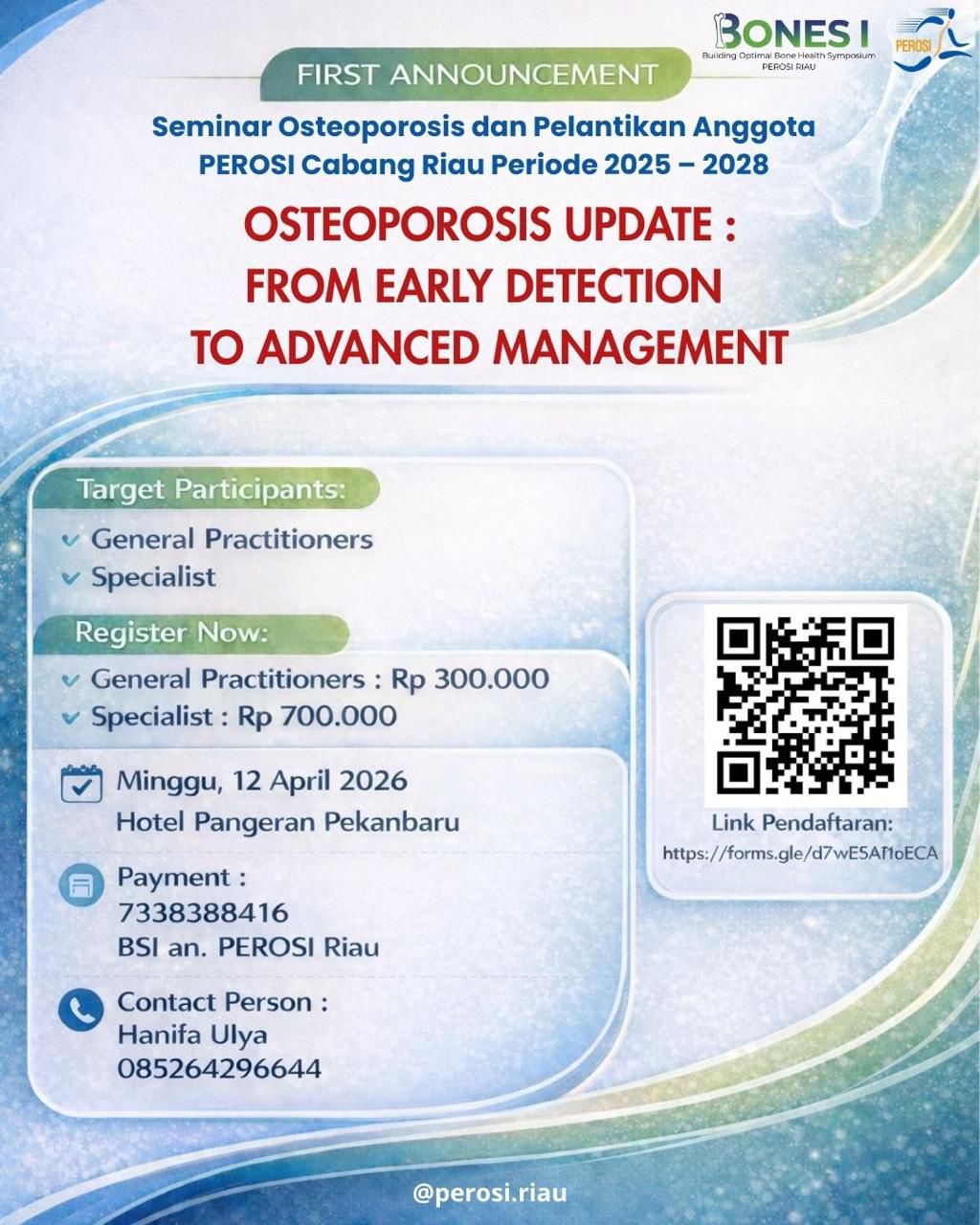 Seminar Osteoporosis dan Pelantikan Anggota PEROSI Cabang Riau Periode 2025 - 2028 dengan tema: